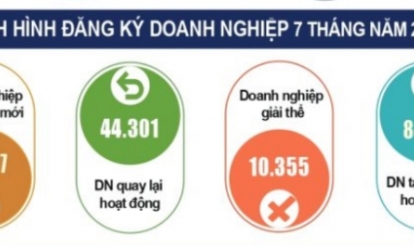 Tình hình đăng ký doanh nghiệp 7 tháng năm 2022