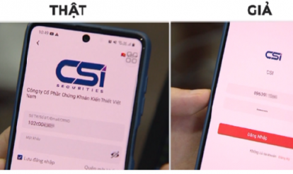 Hai ứng dụng đầu tư chứng khoán có tên giống nhau là CSI, tên gọi viết tắt của Công ty chứng khoán Kiết Thiết Việt Nam, nhưng một ứng dụng là giả mạo.