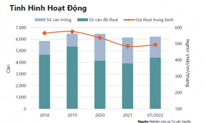 Báo cáo thị trường bất động sản TP. HCM quý II/2022 của Savills cho thấy, công suất cho thuê của phân khúc căn hộ dịch vụ đã đạt 74%, tăng 6 điểm phần trăm theo quý và 10 điểm phần trăm theo năm. Giá thuê trung bình cũng tăng nhẹ 1% theo quý, đạt 496.800 VND/m2/tháng. Trong đó, nổi trội là phân khúc hạng A ghi nhận tăng 3% theo quý và 6% so với cùng kỳ năm trước.